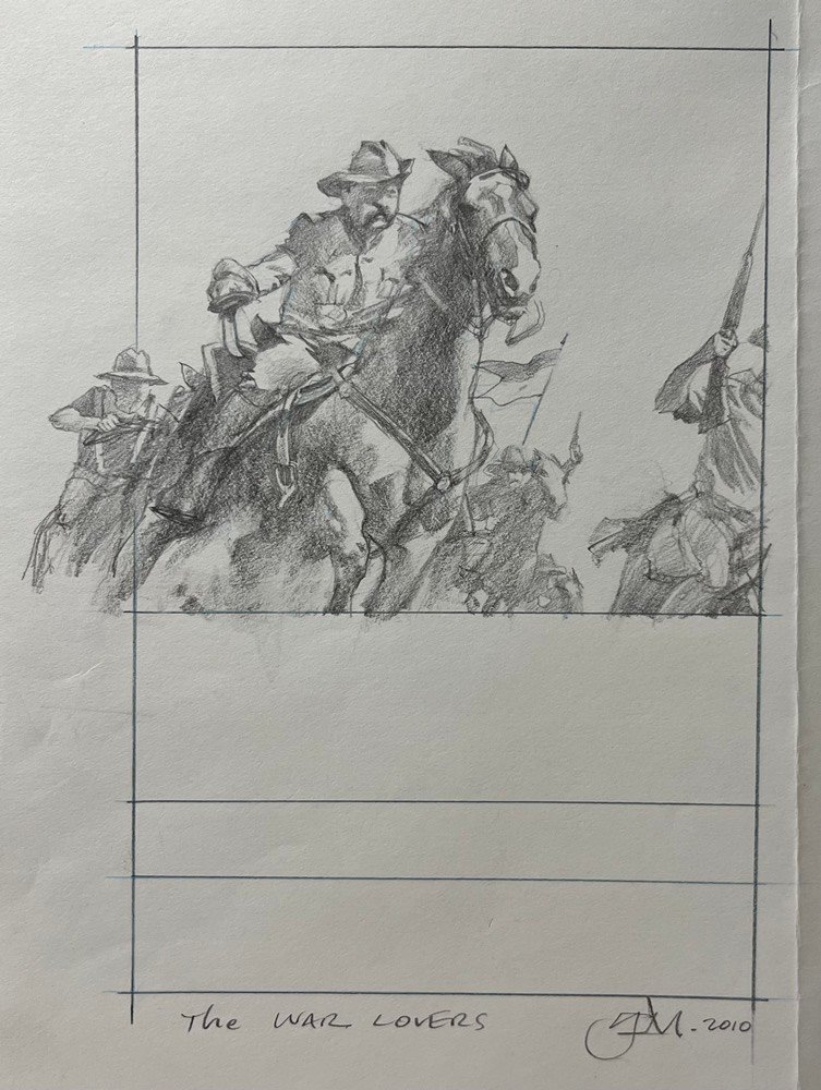 Comment: I hope I don’t get in trouble for saying it but: I think Greg is one of the very best painters working as an illustrator today. The life, the motion, the first-hand feeling to something like this— no great wonder’s in Society of Illustrators’ Hall of Fame. Includes a pencil preliminary mock-up measuring 8.5 x 6.5” which is signed and dated 2010.