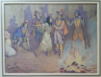 Description: Pair of book illustrations (a): Young Pocahontas attracting woodland creatures