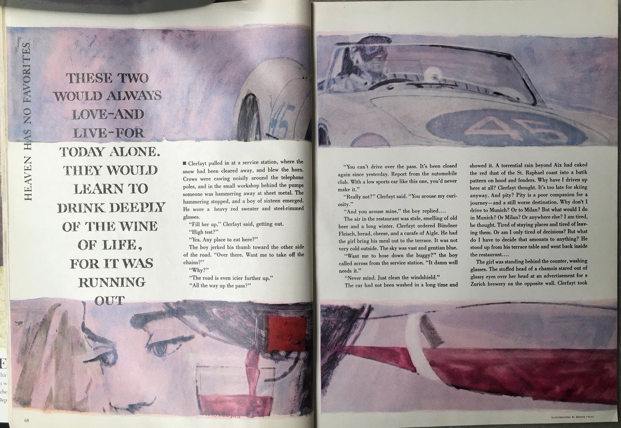 Publication Information Story illustration for “Heaven Has No Favorites” by E.M. Remarque, appearing in Good Housekeeping for February, 1961