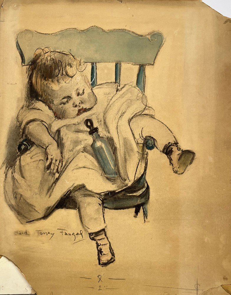 Comment:  A nice example from the artist. I find an appealing narrative here that’s not always included in her works that read as more sweetly-idealized than this. From an important collection of American illustration.